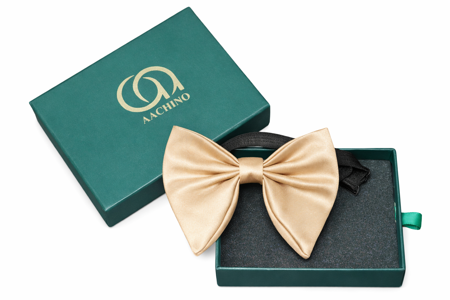 AACHINO Premium Japanese Fabric Gold Bow Tie – Handcrafted Formal Neckwear for Men