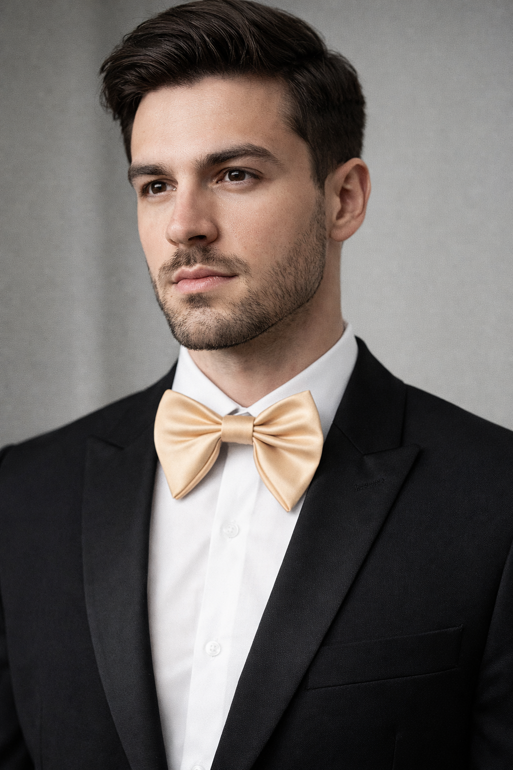 Upgrade your formal wardrobe with the AACHINO Premium Tuxedo NeckBow, designed for men who appreciate elegance, confidence, and timeless fashion. Crafted using premium tuxedo fabric, this bow tie provides a smooth finish and structured appearance that complements suits, tuxedos, and formal shirts. The pre-tied design ensures a perfectly shaped bow without the hassle of tying it yourself, making it ideal for quick styling before important occasions. Whether you are attending a wedding, corporate event, reception, or formal dinner, the AACHINO NeckBow adds a sophisticated touch to your outfit and helps you stand out with confidence. AACHINO – Designed for Gentlemen Who Value Style.