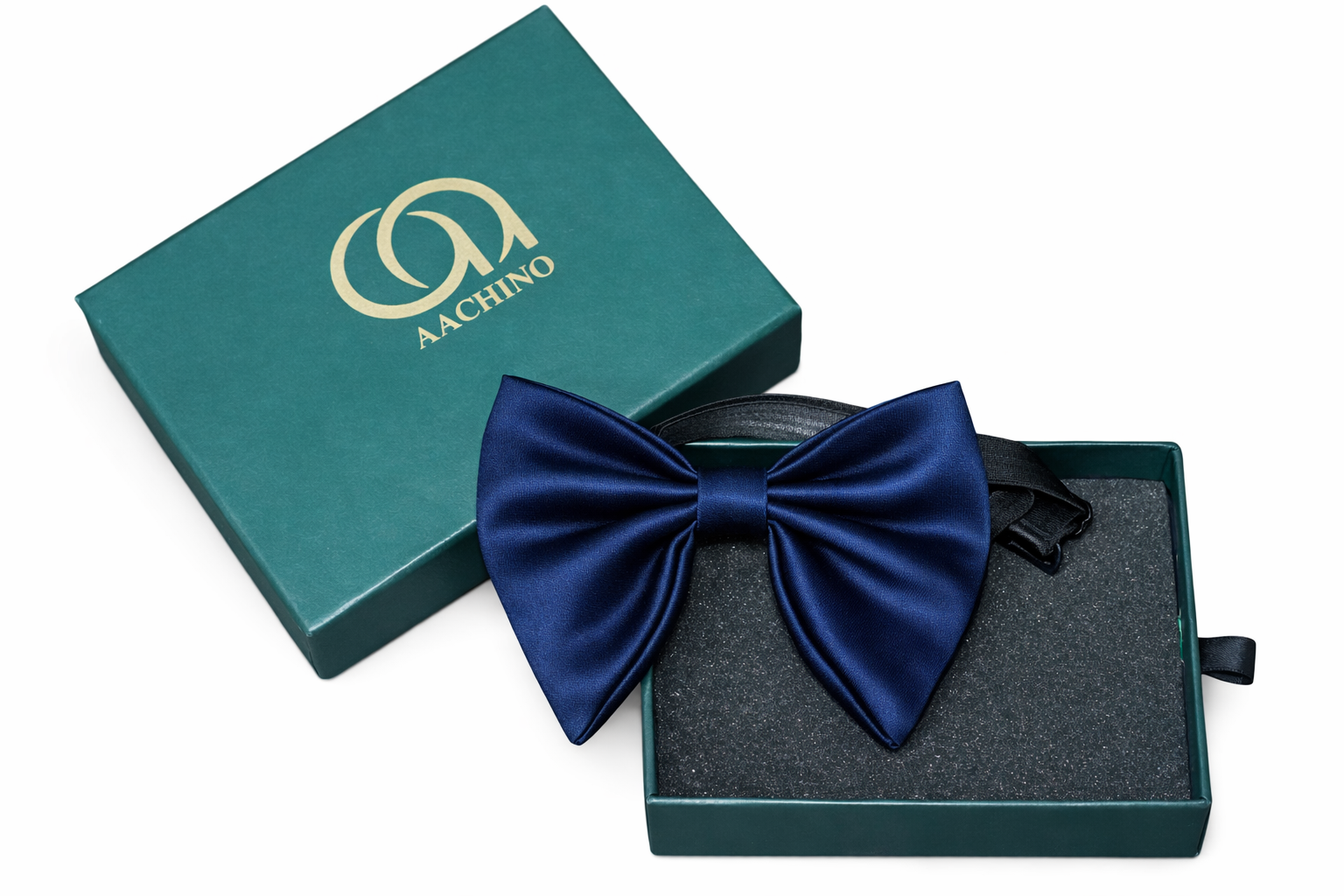 AACHINO Premium Japanese Fabric Navy Blue Bow Tie – Handcrafted Formal Neckwear for Men