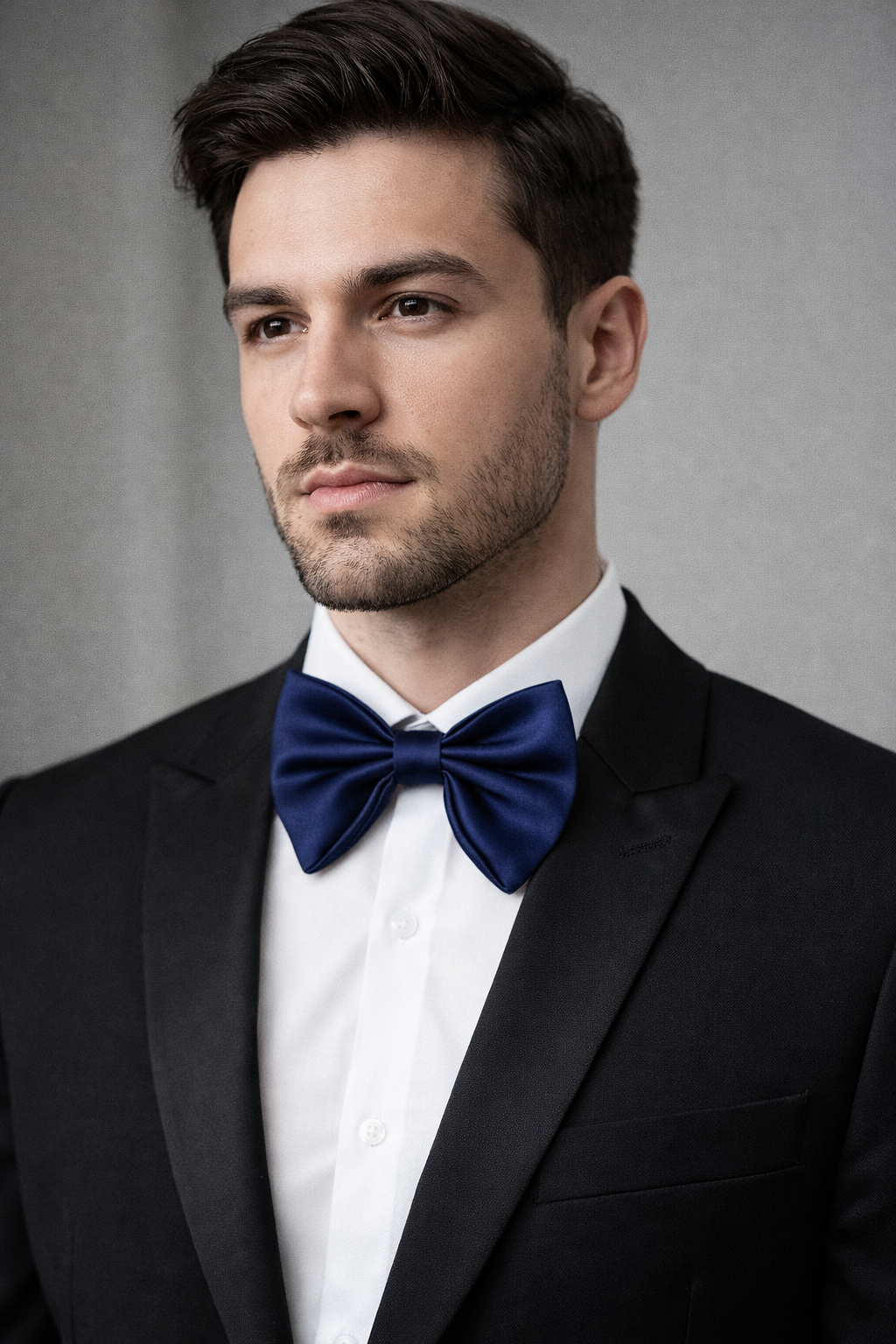 Upgrade your formal wardrobe with the AACHINO Premium Tuxedo NeckBow, designed for men who appreciate elegance, confidence, and timeless fashion. Crafted using premium tuxedo fabric, this bow tie provides a smooth finish and structured appearance that complements suits, tuxedos, and formal shirts. The pre-tied design ensures a perfectly shaped bow without the hassle of tying it yourself, making it ideal for quick styling before important occasions. Whether you are attending a wedding, corporate event, reception, or formal dinner, the AACHINO NeckBow adds a sophisticated touch to your outfit and helps you stand out with confidence. AACHINO – Designed for Gentlemen Who Value Style.