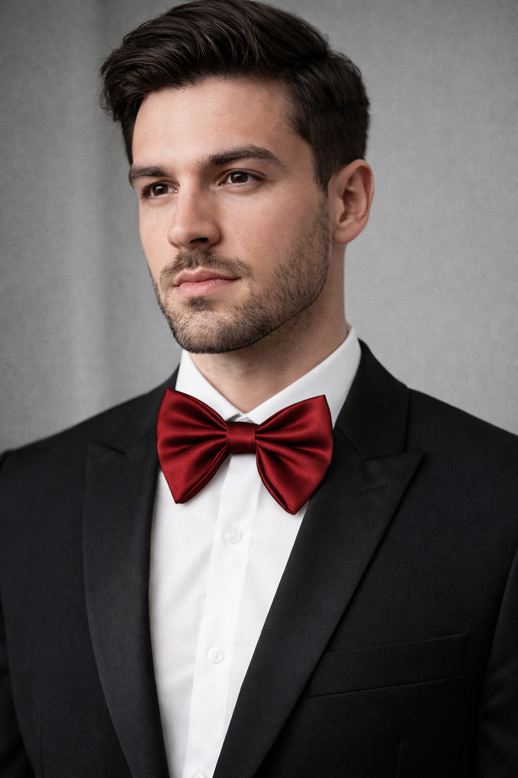 AACHINO Premium Japanese Fabric Red Bow Tie – Handcrafted Formal Neckwear for Men